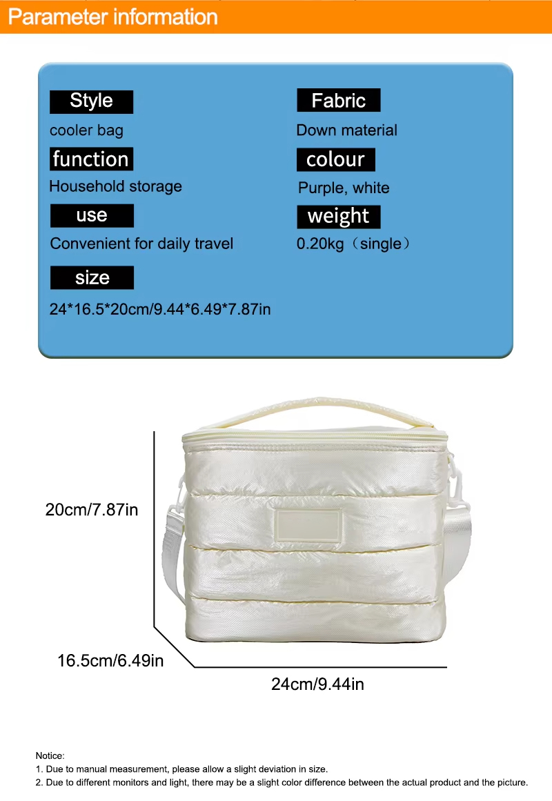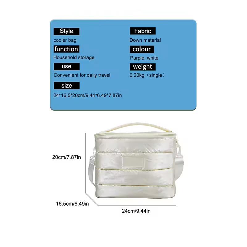 Questa borsa termica portatile e morbida è progettata per rendere il trasporto di cibo e bevande facile e comodo. La sua struttura morbida garantisce una maneggevolezza leggera, offrendo al contempo spazio sufficiente per pranzi, spuntini o bevande. La borsa è adatta per l'uso quotidiano, picnic, attività all'aperto e brevi viaggi, consentendoti di mantenere i tuoi oggetti organizzati e accessibili.