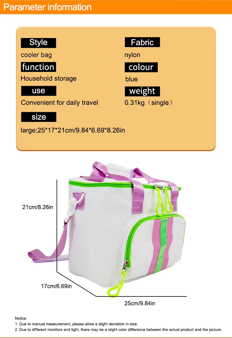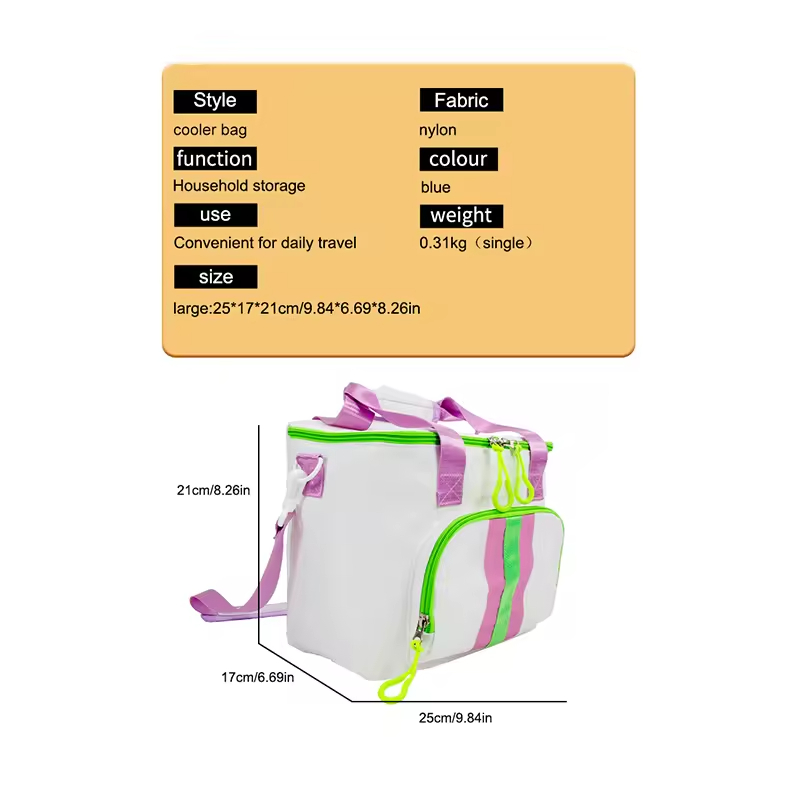 La borsa termica resistente Soft Food Insulation unisce stile, durevolezza e funzionalità in un unico pratico pacchetto. Grazie al materiale isolante di alta qualità, alla resistente cerniera bimetallica, alla tracolla regolabile e alla tasca portaoggetti aggiuntiva, questa borsa termica è progettata per soddisfare tutte le tue esigenze di raffreddamento. Che tu stia conservando snack per una lunga escursione o bevande per una giornata in spiaggia, questa borsa termica è la scelta ideale per mantenere i tuoi oggetti freschi e freschi.