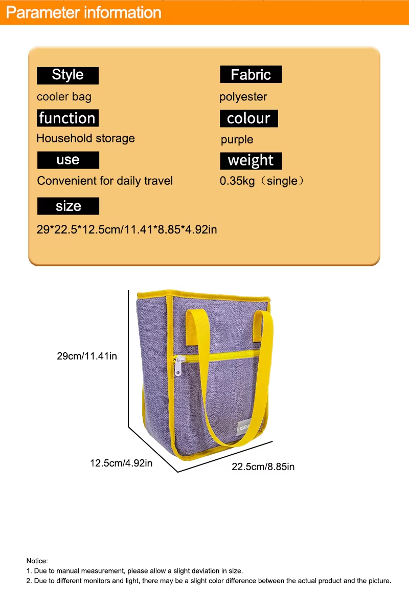 La borsa termica morbida Tote è progettata per rendere semplice e comodo il trasporto di pasti e bevande. La sua struttura leggera consente un facile trasporto, mentre il materiale morbido garantisce una maneggevolezza confortevole. Lo stile tote della borsa la rende adatta a una varietà di situazioni, sia che tu stia andando al lavoro, a scuola, a un picnic o a una piccola uscita.