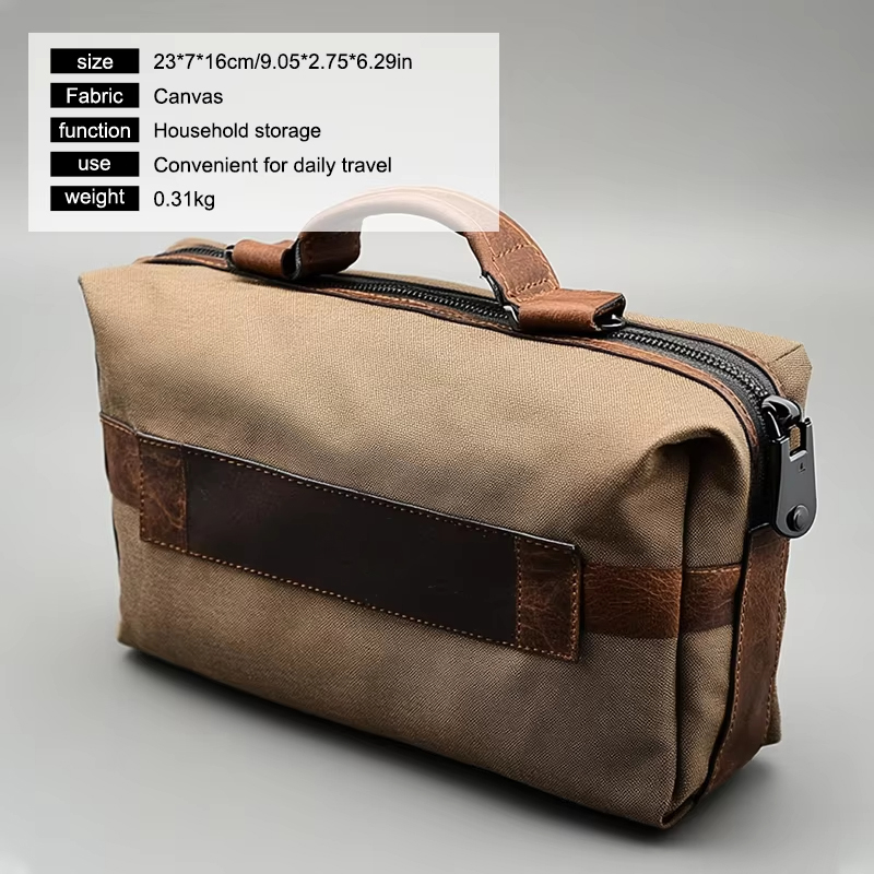 La borsa da toilette da uomo in tela di grande capacità combina l'ideale di stile, durata e funzionalità. I suoi interni spaziosi, i materiali di alta qualità e il design versatile lo rendono un articolo essenziale sia per i viaggi che per l'uso domestico.