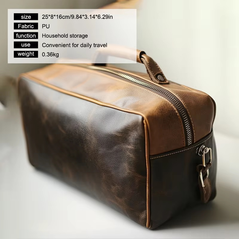 Questa borsa da toilette da uomo bilancia stile e funzionalità. Il classico design in tela, abbinato agli eleganti dettagli in pelle PU, gli conferisce un aspetto moderno e sofisticato. Che tu lo utilizzi per la cura personale o come soluzione di conservazione, questa borsa cosmetica è il compagno ideale per chiunque apprezzi sia lo stile che la praticità.