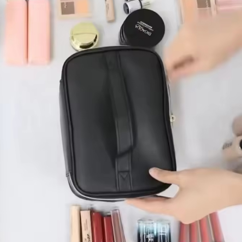 Dotata di doppie cerniere SBS di alta qualità, la borsa cosmetica garantisce una chiusura sicura e liscia. Che tu stia viaggiando o conservando i tuoi oggetti a casa, le cerniere garantiscono una maggiore durata, mantenendo i tuoi prodotti sicuri e protetti. Le cerniere affidabili facilitano l'apertura e la chiusura della borsa, garantendo al tempo stesso che tutto rimanga al suo posto.