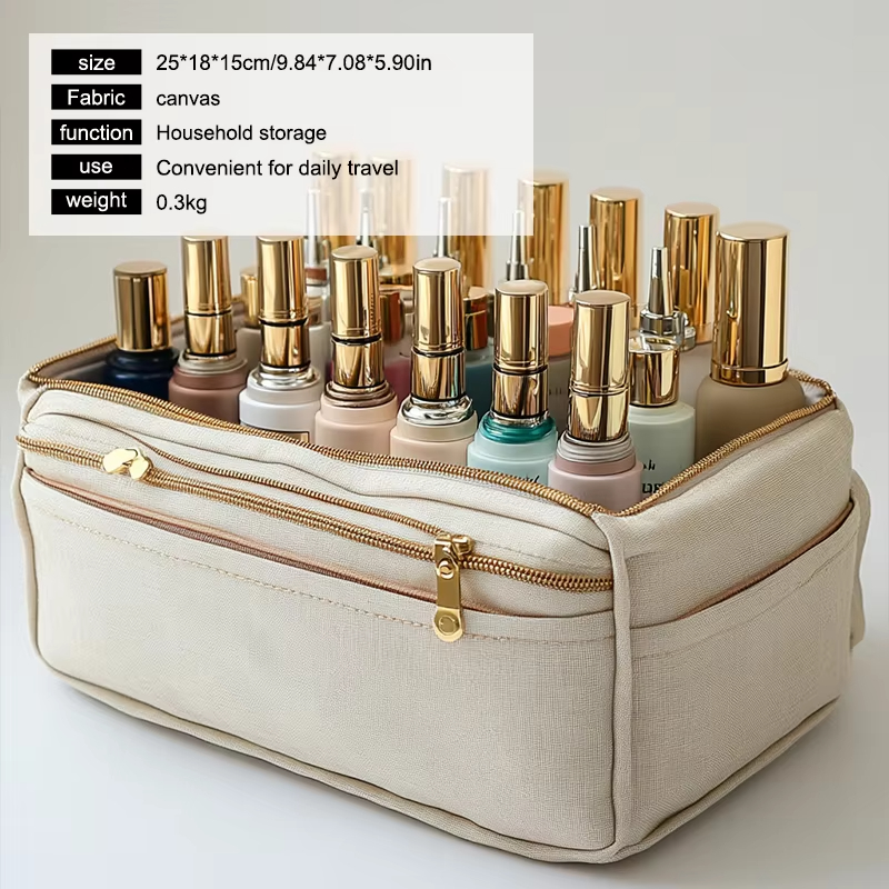 Sebbene ideale per i viaggi, questa borsa cosmetica è anche un'ottima soluzione per la conservazione domestica. I suoi ampi scomparti ti consentono di organizzare non solo i tuoi cosmetici ma anche piccoli articoli da toeletta, gioielli e altri oggetti personali. Grazie all'ampia capacità, è facile riporre tutto in un unico posto, riducendo l'ingombro e mantenendo gli oggetti essenziali organizzati e facili da trovare. Che tu la usi a casa o in viaggio, questa borsa ti aiuta a rimanere organizzato ed efficiente.