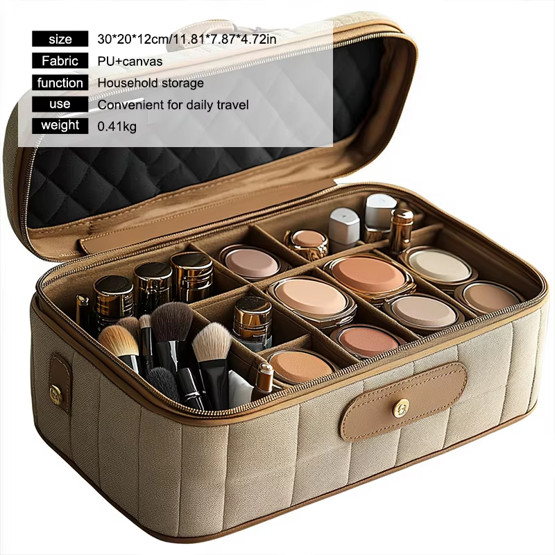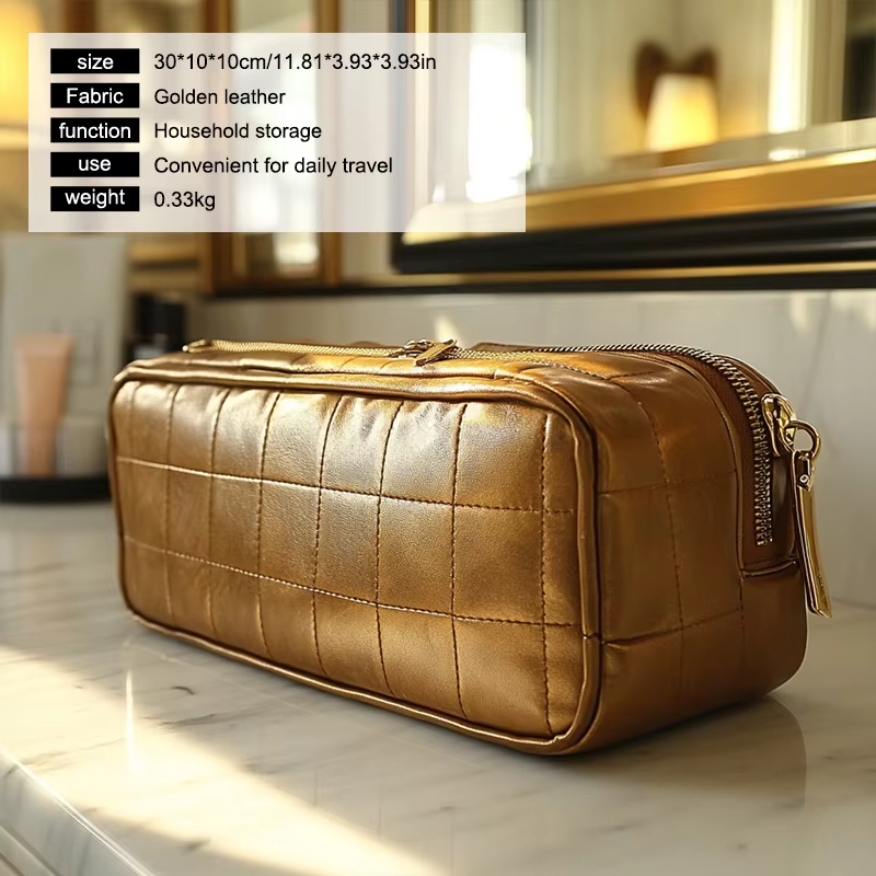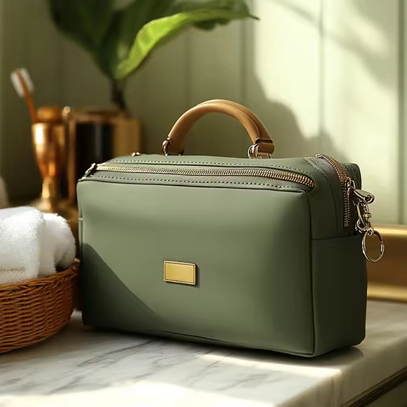 Oltre ad essere un ottimo compagno di viaggio, la borsa cosmetica portatile in pelle è ideale anche per organizzare i tuoi prodotti di bellezza a casa. Il suo design elegante gli consente di integrarsi perfettamente con qualsiasi arredamento, mentre la sua struttura robusta garantisce che i tuoi oggetti rimangano al sicuro e protetti.