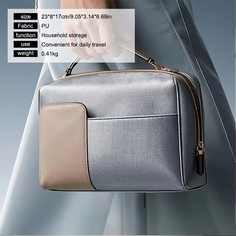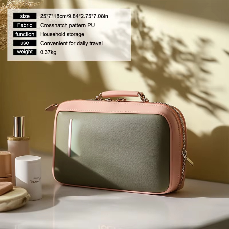 Grazie ai suoi numerosi scomparti e alla disposizione intelligente, questa borsa offre ampio spazio per tutto il trucco, gli articoli da toeletta e altri piccoli oggetti essenziali. Puoi organizzare facilmente il fondotinta, il rossetto, il mascara, lo spazzolino da denti e altri prodotti negli spazi designati. La versatilità della borsa la rende non solo un organizer per cosmetici, ma anche una borsa da toilette, rendendola una soluzione all-in-one ideale per chiunque sia in movimento.