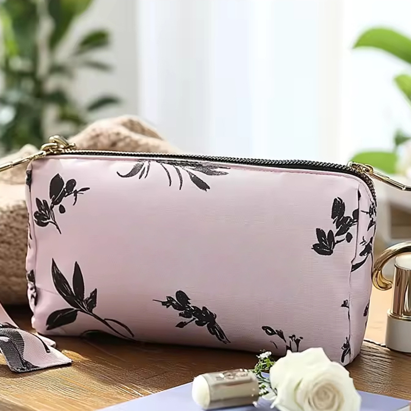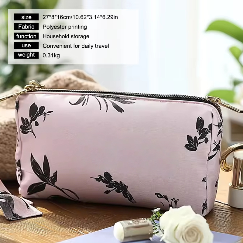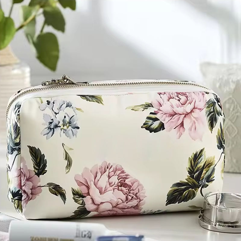 Realizzata in tessuto stampato in poliestere di alta qualità, questa borsa cosmetica è costruita per resistere ai rigori dell'uso quotidiano. Il materiale in poliestere è leggero, ma sufficientemente resistente da proteggere il trucco e i prodotti per la cura della pelle da fuoriuscite e perdite. A differenza di molte altre borse che si consumano nel tempo, il poliestere stampato garantisce un utilizzo duraturo, rendendolo un investimento intelligente per i viaggiatori abituali.