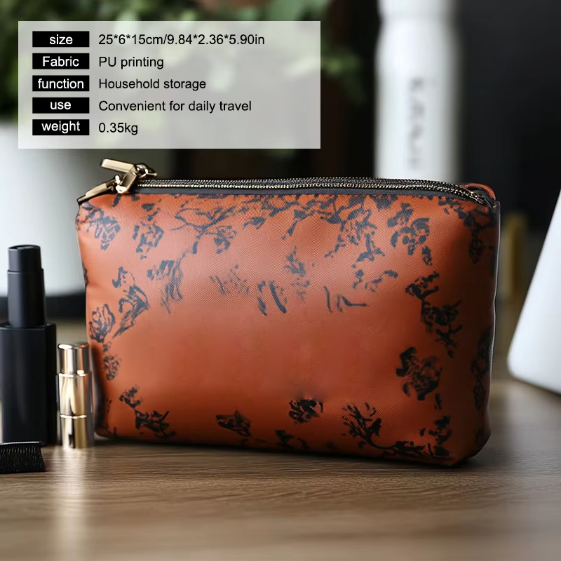 Una delle caratteristiche distintive della borsa cosmetica portatile in poliestere stampato è la sua natura impermeabile. La borsa è progettata per proteggere il contenuto dall'umidità, il che è particolarmente importante per il trucco e gli articoli da toeletta. Che tu sia sorpreso dalla pioggia o che tu conservi oggetti umidi, il rivestimento impermeabile garantisce che tutto all'interno rimanga asciutto. Inoltre, il tessuto in poliestere è facile da pulire —basta pulirlo con un panno umido ed è come nuovo.