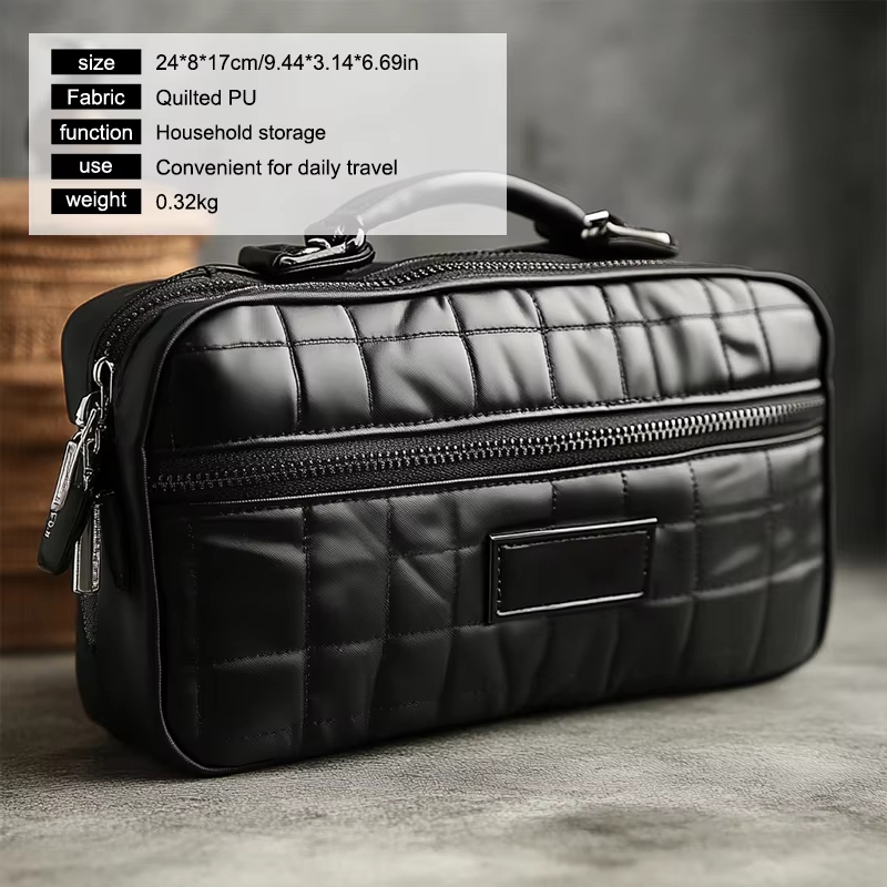 Il tessuto PU utilizzato in questa borsa offre una consistenza liscia ed elegante che resiste all'usura, anche con un uso frequente. La sua struttura leggera non aggiunge ingombro inutile, rendendolo facile da imballare in valigia o nel bagaglio a mano. Il materiale è anche impermeabile, il che garantisce che i tuoi oggetti personali siano tenuti al sicuro dai danni causati dall'acqua, indipendentemente dalle condizioni meteorologiche.
