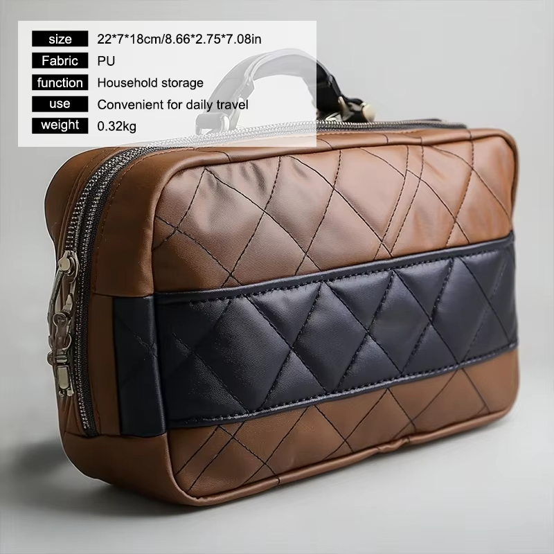 Realizzata in tessuto PU (poliuretano) di alta qualità, questa borsa cosmetica vanta una durata eccezionale e resistenza all'acqua. Che tu stia conservando trucco, prodotti per la cura della pelle o articoli da toeletta, la natura impermeabile di questa borsa garantisce che i tuoi articoli siano protetti da fuoriuscite, umidità e altri fattori ambientali. Questa funzione è particolarmente utile quando si viaggia, poiché aiuta a prevenire perdite o incidenti che potrebbero danneggiare i prodotti o altri effetti personali. Il robusto materiale PU rende inoltre la borsa facile da pulire, garantendo che rimanga come nuova anche dopo un uso frequente.