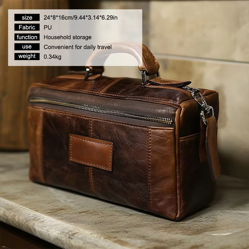 Una delle caratteristiche distintive della borsa cosmetica impermeabile in PU con manico con cerniera è il suo design adatto ai viaggi. Le sue dimensioni compatte gli consentono di entrare facilmente nel bagaglio, nel bagaglio a mano o anche in una borsetta, rendendolo il compagno ideale per qualsiasi viaggio. Che tu stia andando a una riunione di lavoro, a una vacanza o a un weekend fuori porta, questa borsa per cosmetici garantisce che i tuoi prodotti di bellezza essenziali siano sempre organizzati e facilmente accessibili. Non dovrai più frugare nella borsa per trovare il rossetto o la crema idratante: tutto sarà conservato ordinatamente in un unico posto.