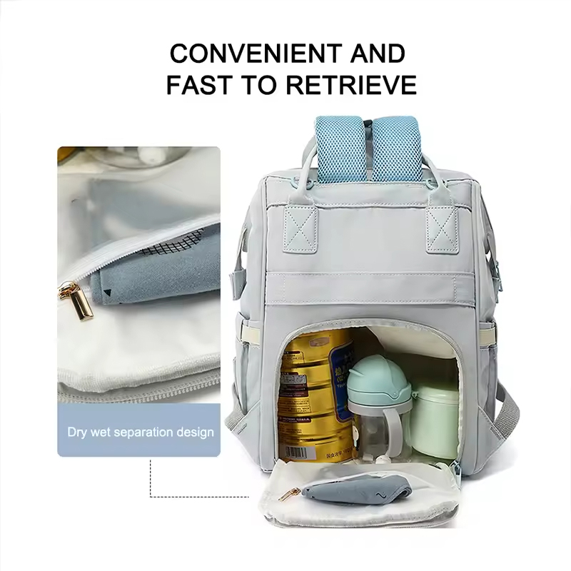 La borsa per pannolini di grande capacità con fasciatoio è un articolo essenziale per i genitori che desiderano comodità, stile e praticità in uno. Grazie ai suoi ampi scomparti, al fasciatoio incorporato e ai materiali resistenti, questa borsa per pannolini è progettata per semplificare la vita dei genitori sempre in movimento.