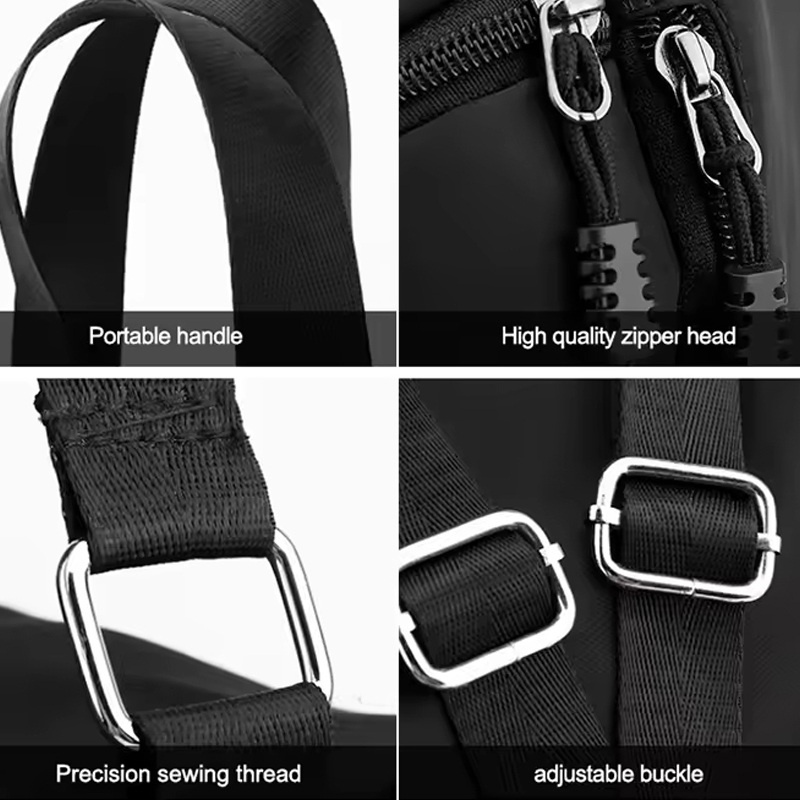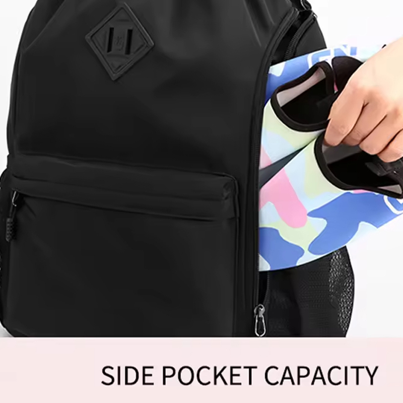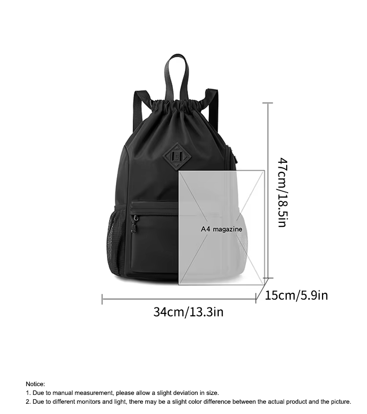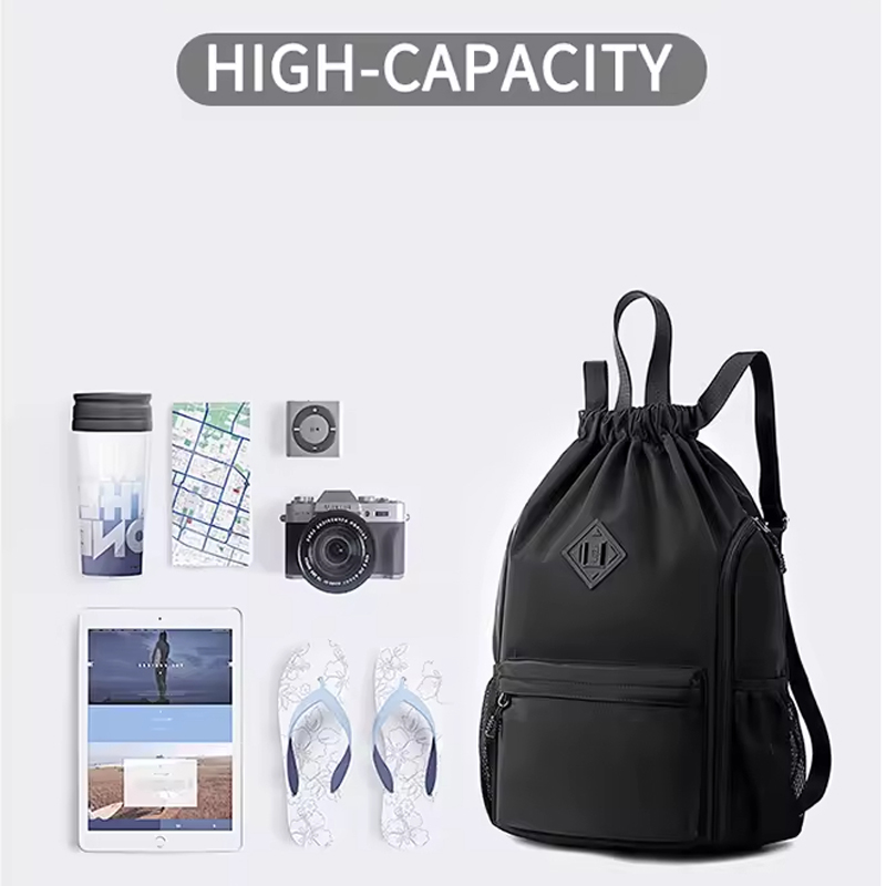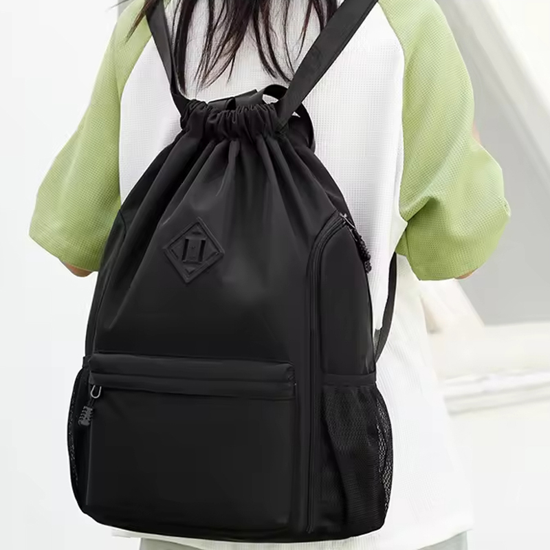 L'organizzazione è fondamentale quando si tratta di viaggiare e questo zaino con coulisse per viaggi di diverse dimensioni eccelle in questo ambito. Lo scomparto principale è sufficientemente spazioso da contenere oggetti più grandi, mentre le tasche più piccole all'interno offrono un comodo spazio per riporre gli oggetti essenziali più piccoli. Puoi conservare i tuoi dispositivi elettronici, cosmetici, snack e altro ancora in sezioni dedicate, mantenendo tutto organizzato e facilmente raggiungibile. Basta rovistare in una borsa disordinata—tutto ha il suo posto.