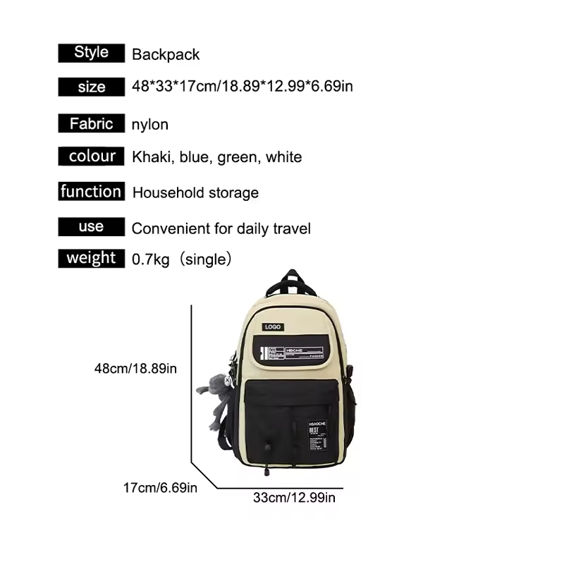 Una delle caratteristiche distintive di questa borsa scolastica impermeabile di grande capacità alla moda casual è il suo materiale impermeabile. Realizzato in nylon di alta qualità, offre un'ottima protezione contro la pioggia, assicurando che i tuoi effetti personali rimangano asciutti anche in caso di acquazzoni imprevisti.