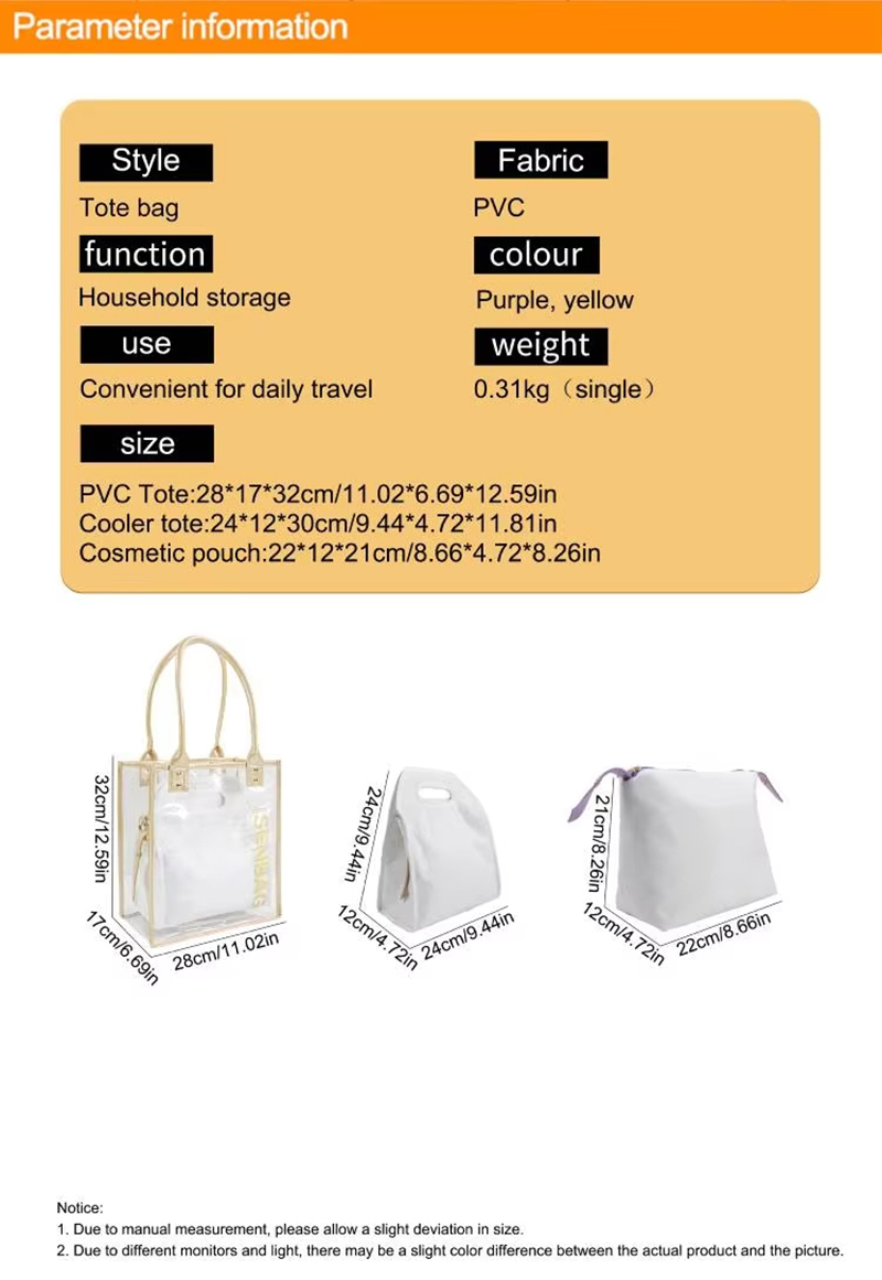 Questa borsa è adatta per lo shopping, le gite in spiaggia, i picnic o qualsiasi attività in cui l'organizzazione e il raffreddamento siano utili. Il suo design trasparente aggiunge un tocco moderno rendendo più facile trovare rapidamente ciò di cui hai bisogno.